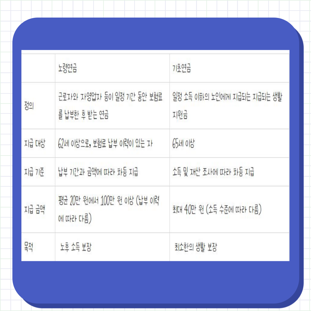 소득 요건: 노령연금은 기본적으로 소득에 영향을 미치지 않지만, 일정 소득 이상일 경우 연금 지급액이 조정될 수 있습니다.