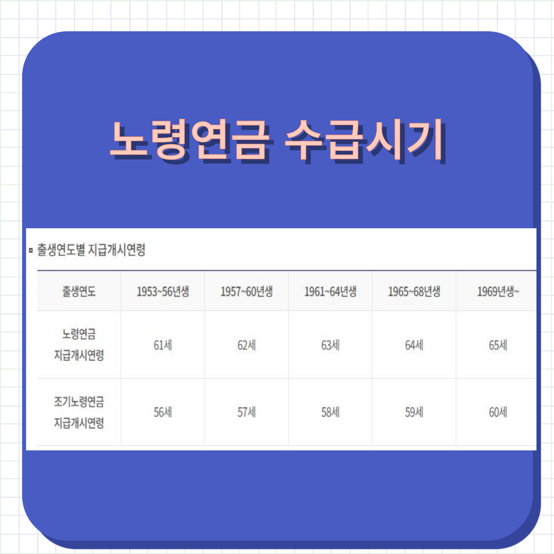 연령 요건: 출생연도별 노령연금 지급개시연령이 된 때, 62세 이상이어야 합니다.